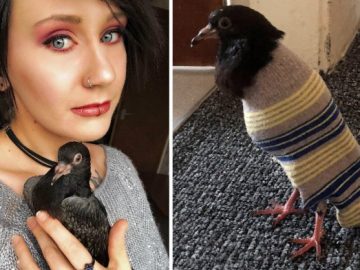 Девушка приютила раненого голубя. И нашла для него подходящую одёжку