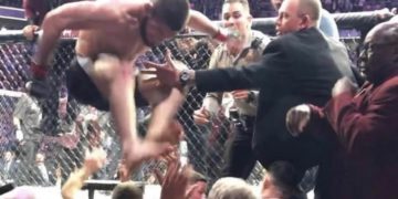 Хабиб перепрыгивает через ограду – мем-формат со снимком российского бойца Хабиба Нурмагомедова, перелезающего через ограду клетки после победы в бою UFC 229 над Конором Макгрегором. Фото используется для мемов про ситуации, в которых кто-то решительно намерен разобраться с какой-либо проблемой, а так же в фотожабах. Происхождение Поединок UFC по смешанным единоборствам между россиянином Хабибом Нурмагомедовым и ирландцем … Читать далее Хабиб перепрыгивает через ограду