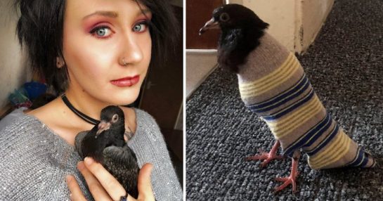 Девушка приютила раненого голубя. И нашла для него подходящую одёжку