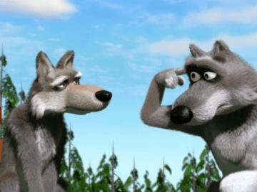 Волк с пальцем у виска